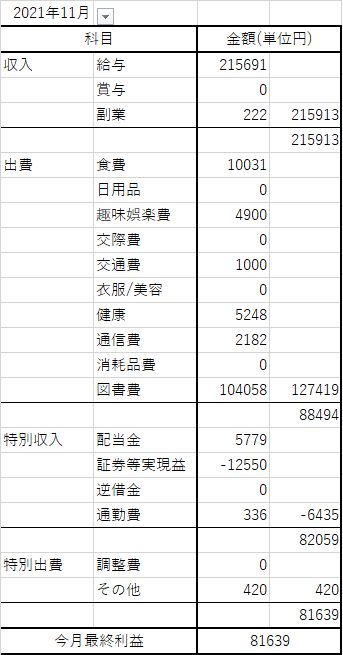 資格受験費用が5万*2で10万の出費。ただこれは合格すれば帰ってくる予定。